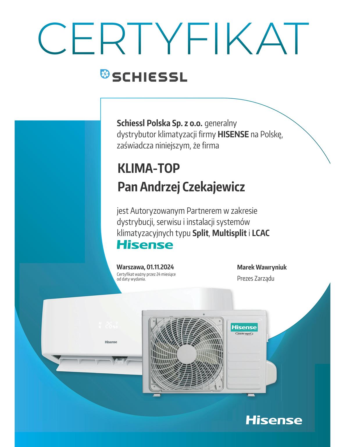 Certyfikat autoryzacyjny Hisense