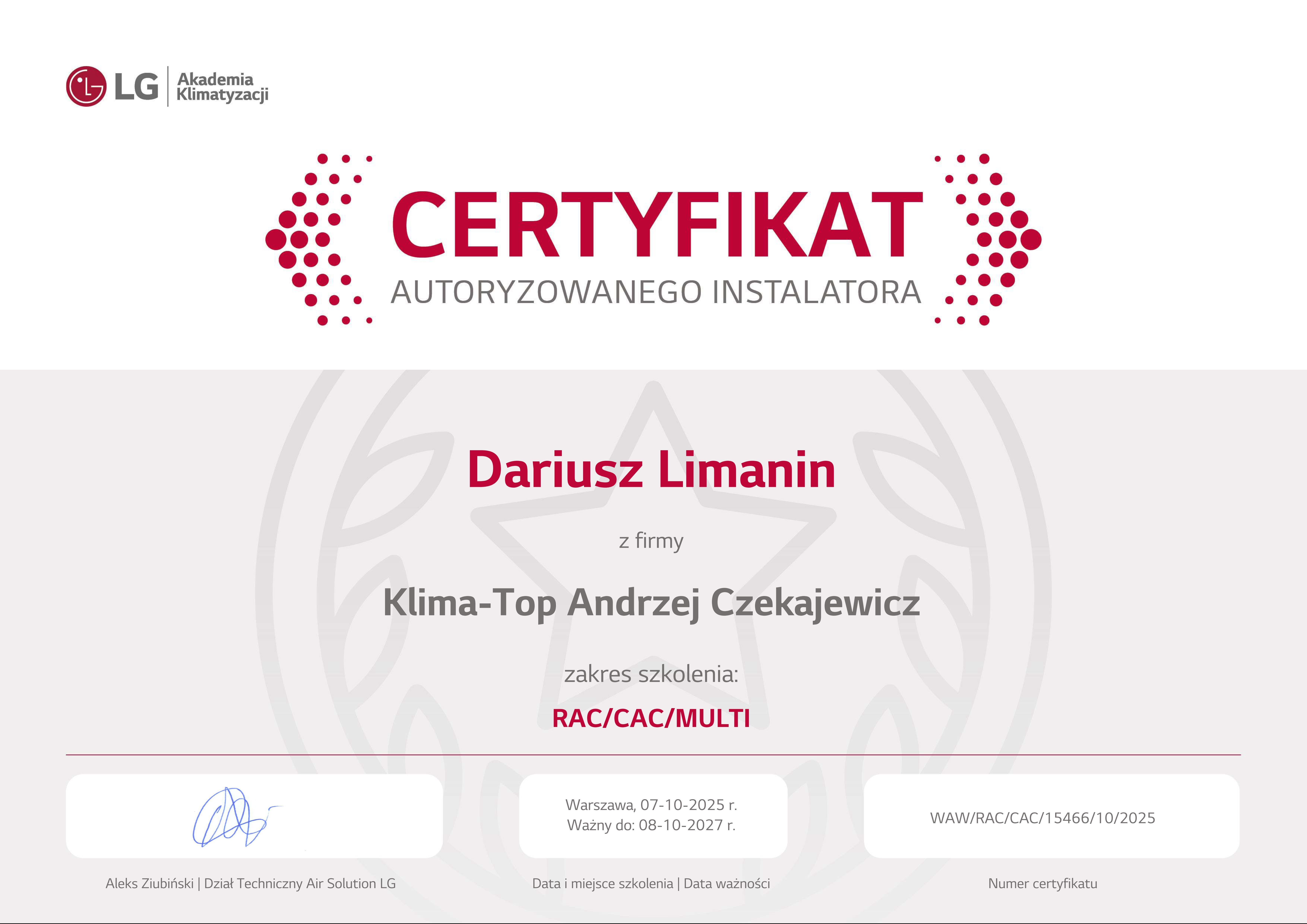 OD 2004 ROKU JESTEŚMY AUTORYZOWANYM INSTALATOREM KLIMATYZATORÓW MARKI LG