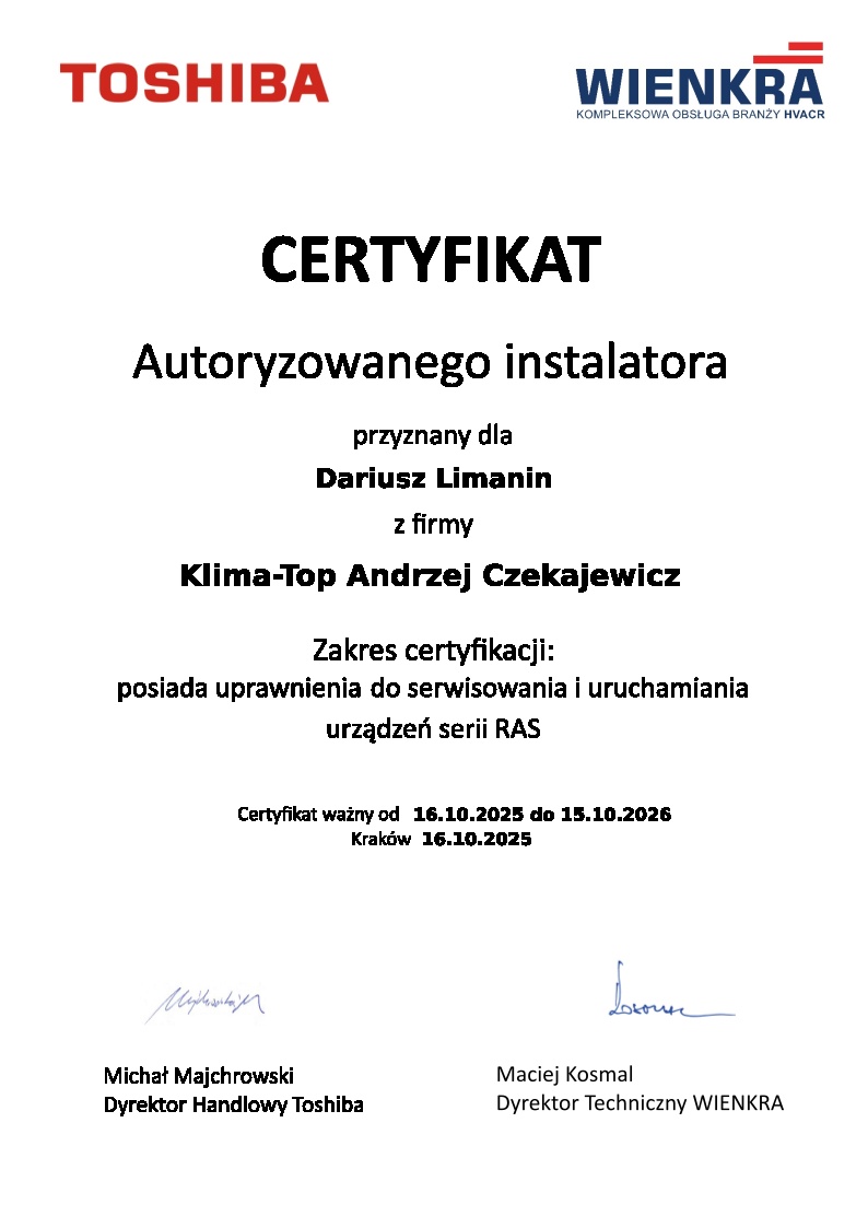 OD 2020 ROKU JESTEŚMY AUTORYZOWANYM INSTALATOREM KLIMATYZATORÓW MARKI TOSHIBA