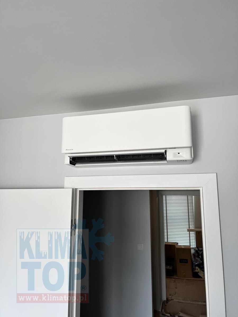 Montaż klimatyzatora multisplit marki Daikin z jednostkami Emura oraz Stylish, (moc chłodnicza 2x2kW + 1x3,5kW) obsługującego trzy pomieszczenia - salon, sypialnię oraz gabinet.