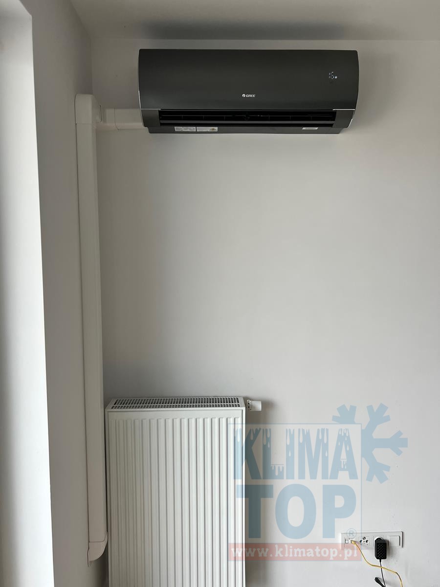Montaż klimatyzatora Gree serii Fairy, model FA09D (grafitowy) (moc chłodnicza 2,7 kW), obsługującego salon powierzchni 24 m2.