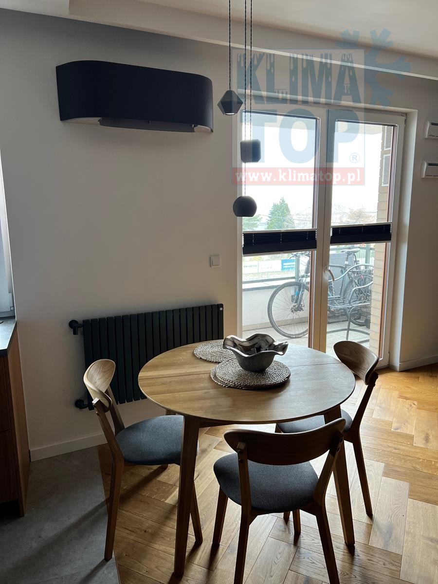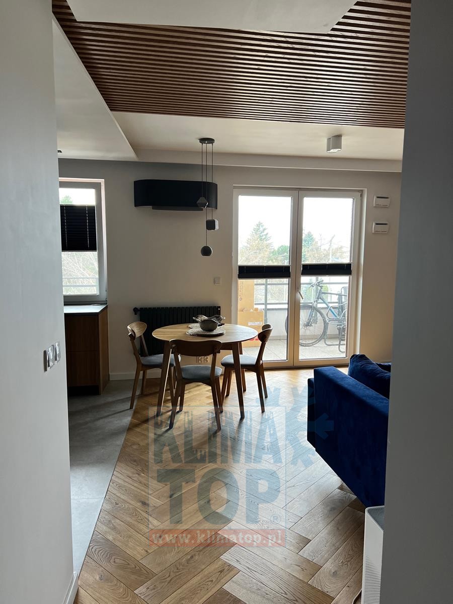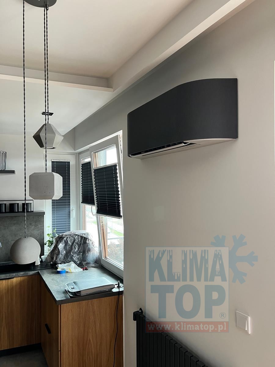 Montaż klimatyzatora Gree serii Fairy, model FA24D (grafitowy) (moc chłodnicza 7,0 kW), obsługującego salon z kuchnią i przedpokojem o łącznej powierzchni około 60 m2.