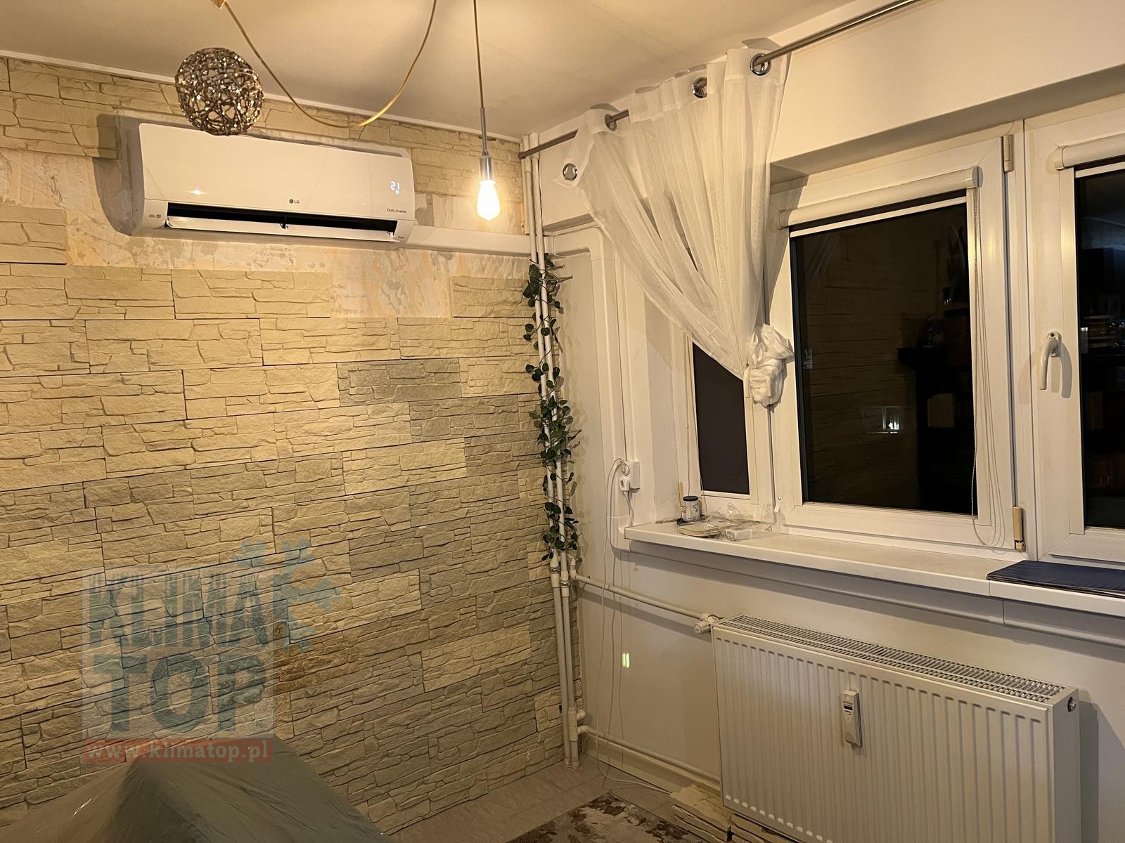 Montaż klimatyzatora LG serii Standard 2, model S12ET (moc chłodnicza 3,5 kW), obsługującego salon z kuchnią o łącznej powierzchni 28 m2.