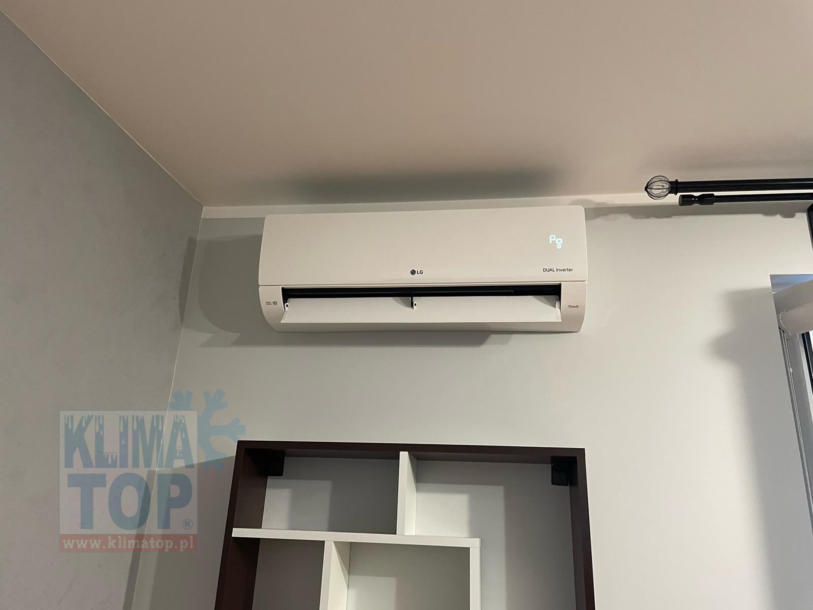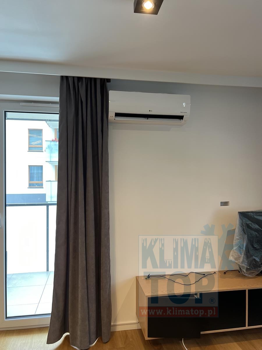 Montaż klimatyzatora LG serii Standard 2, model S12ET (moc chłodnicza 3,5 kW), obsługującego salon z kuchnią o łącznej powierzchni 26 m2.