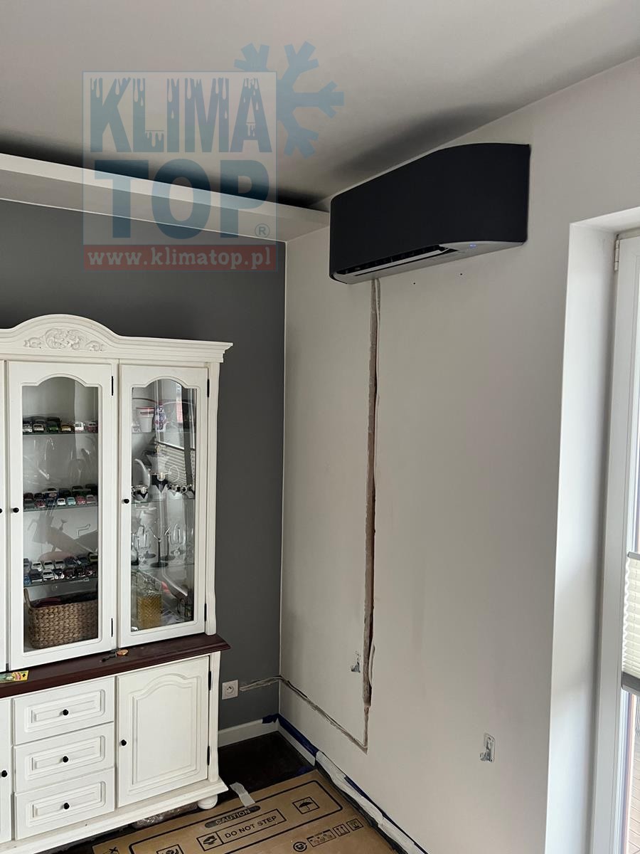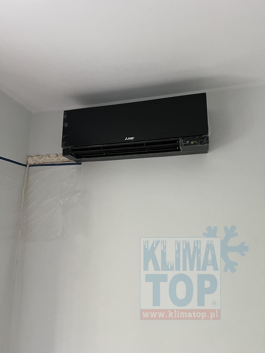 Montaż klimatyzatora Mitsubishi serii Premium, model MSZ-EF50VGKB (black) (moc chłodnicza 5,0 kW), obsługującego salon z kuchnią o łącznej powierzchni 42 m2.