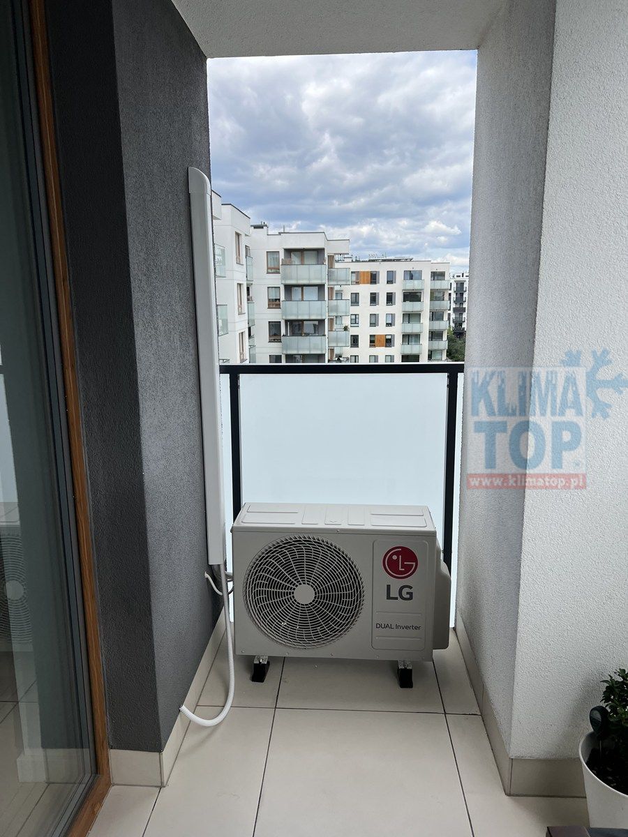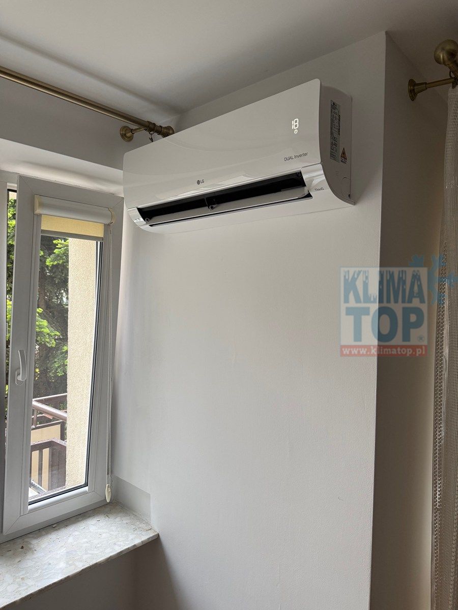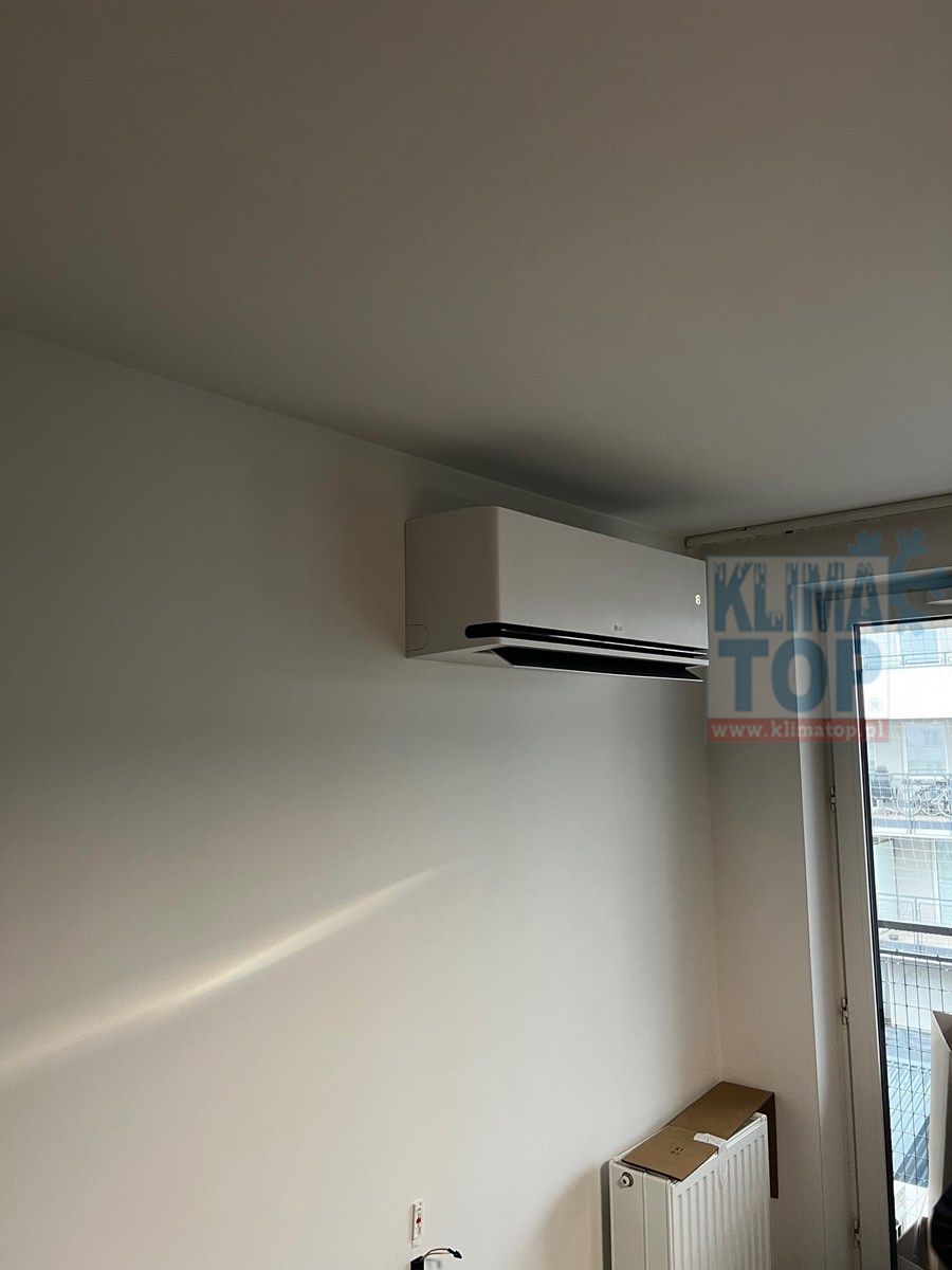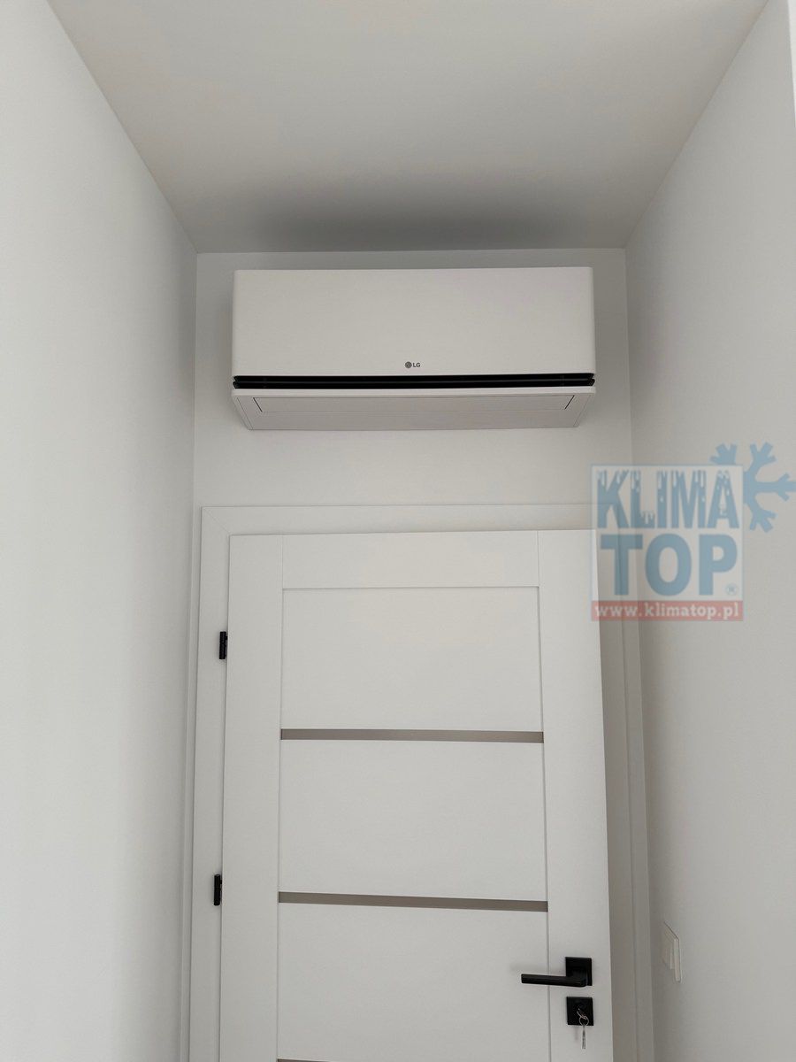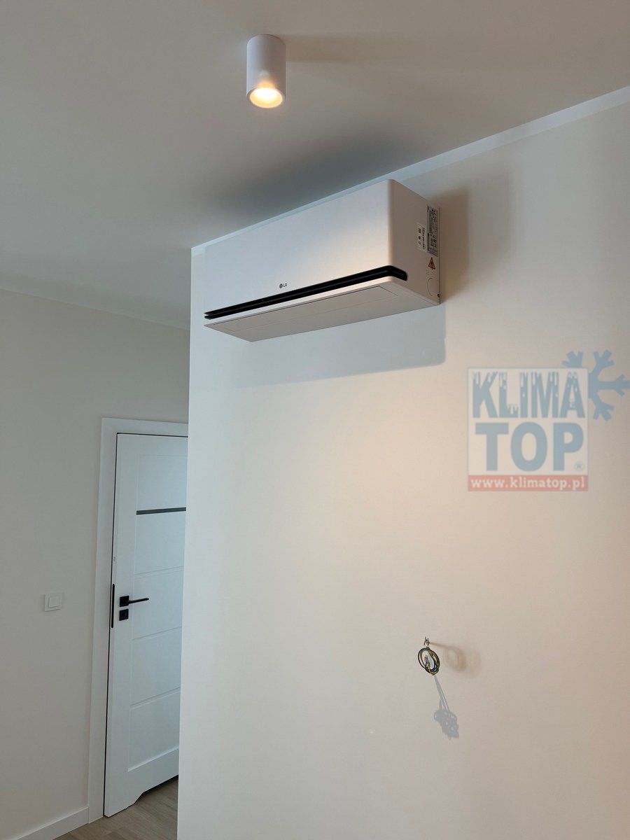 Montaż klimatyzatora LG serii ArtCool Mirror, model AC18BK (moc chłodnicza 5,0 kW), obsługującego salon z kuchnią i przedpokojem o łącznej powierzchni 46 m2.