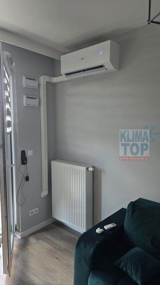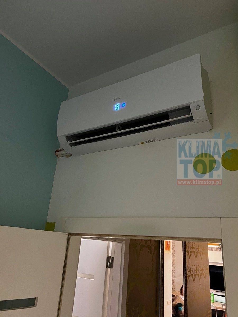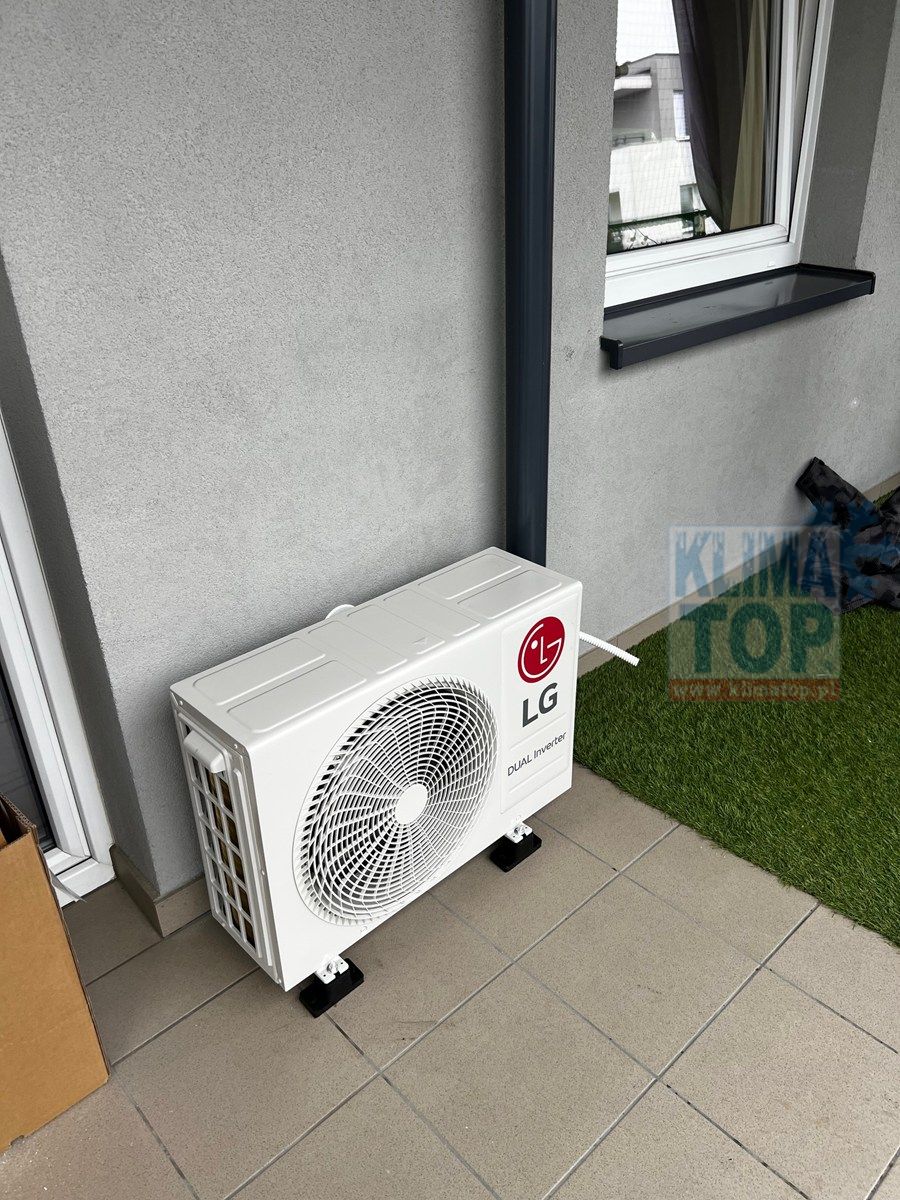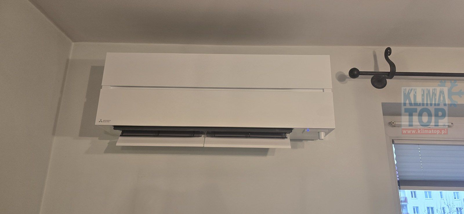 Montaż klimatyzatora LG serii ArtCool Mirror, model AC18BK (moc chłodnicza 5,0 kW), obsługującego salon z kuchnią i przedpokojem o łącznej powierzchni 46 m2.