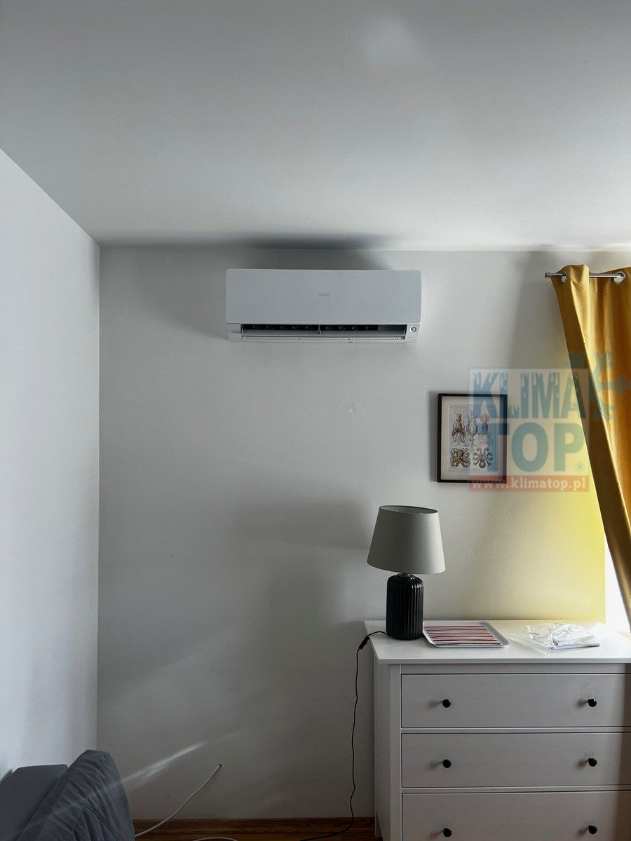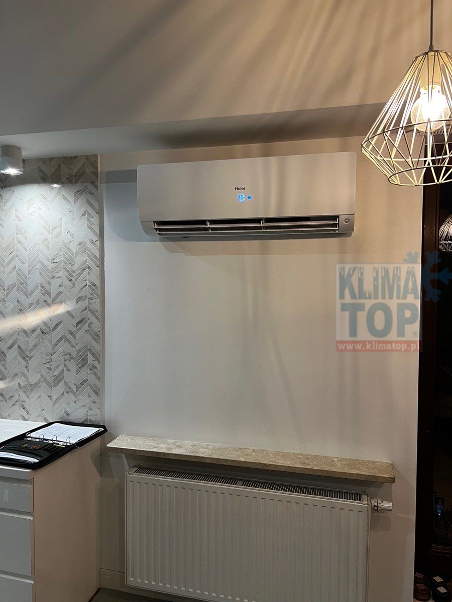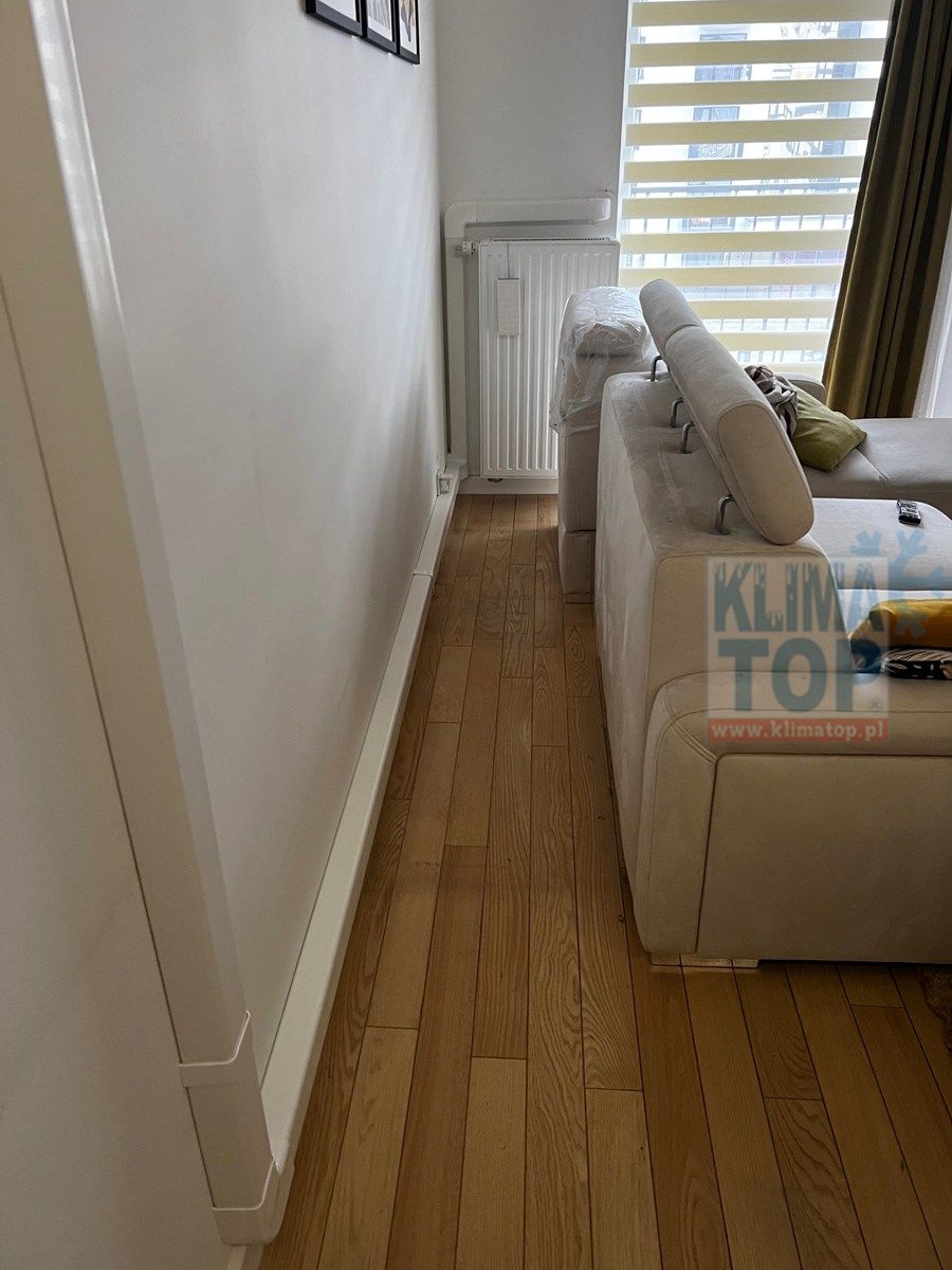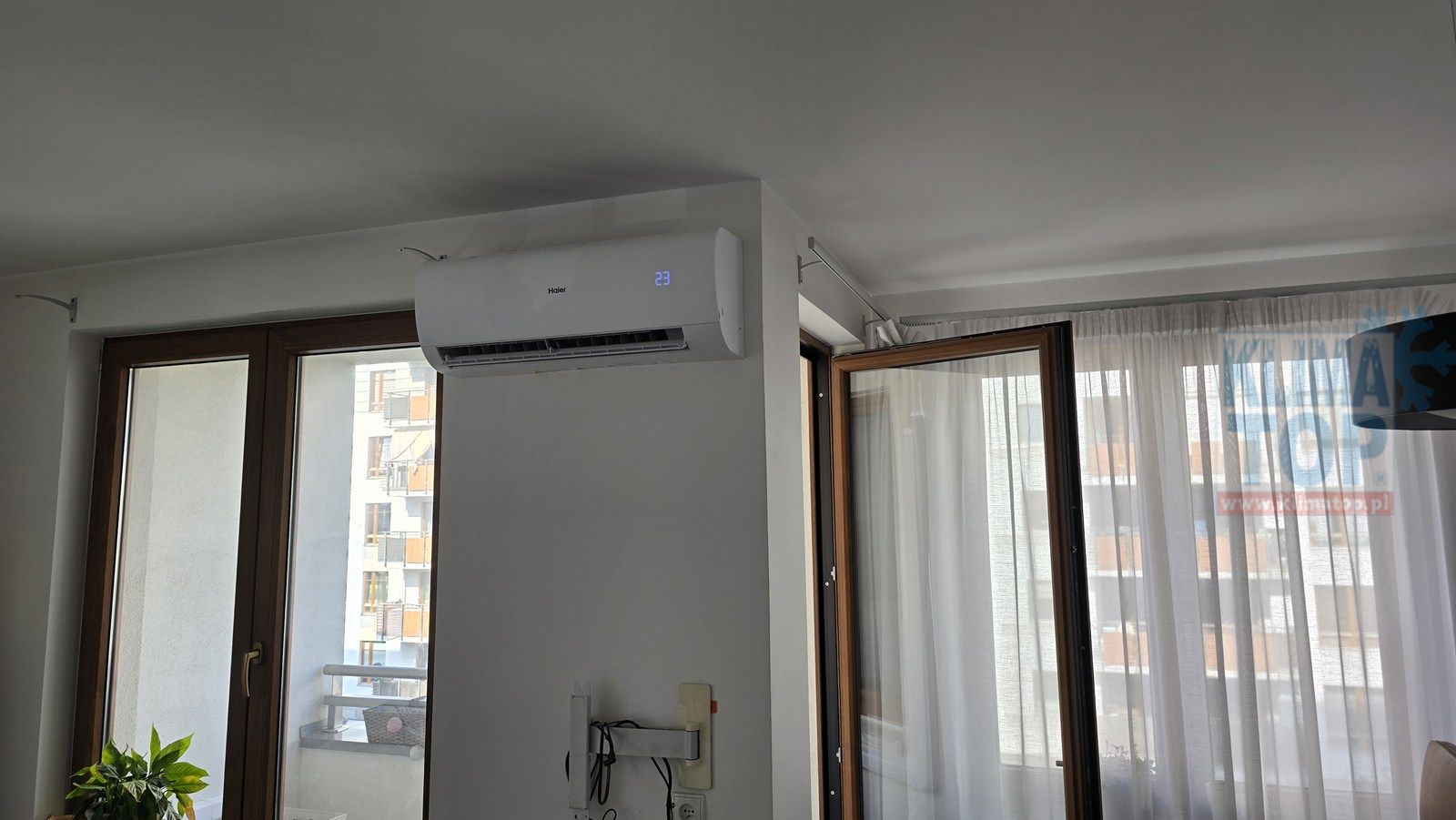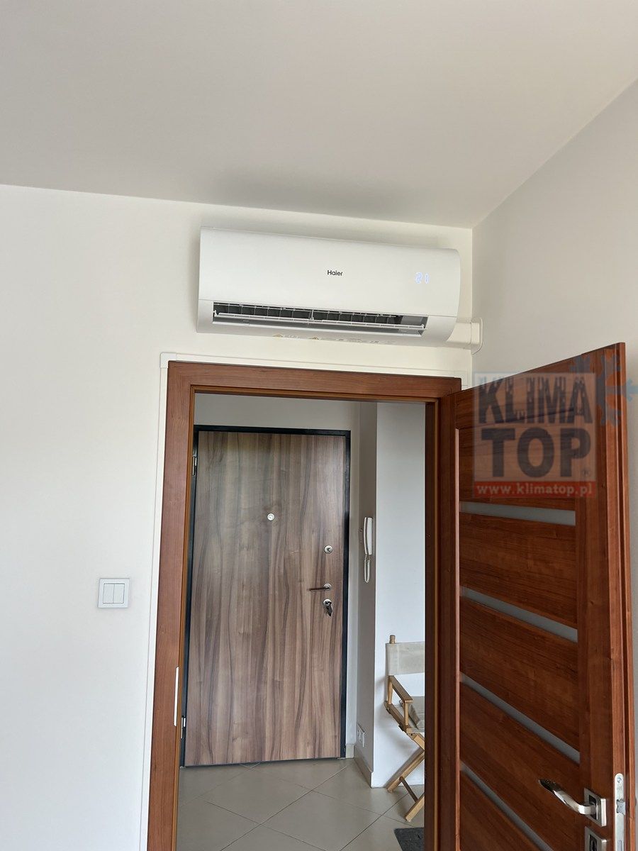 Montaż klimatyzatora LG serii ArtCool Mirror, model AC18BK (moc chłodnicza 5,0 kW), obsługującego salon z kuchnią i przedpokojem o łącznej powierzchni 46 m2.