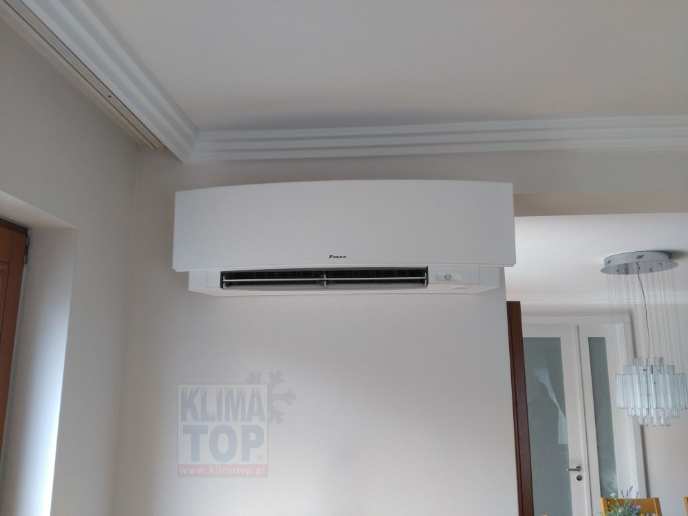 Mieszkanie prywatne - Warszawa Wilanów. Zamontowany klimatyzator: Daikin FTXJ35MW serii Emura (moc chłodnicza 3,5 kW) obsługujący salon.