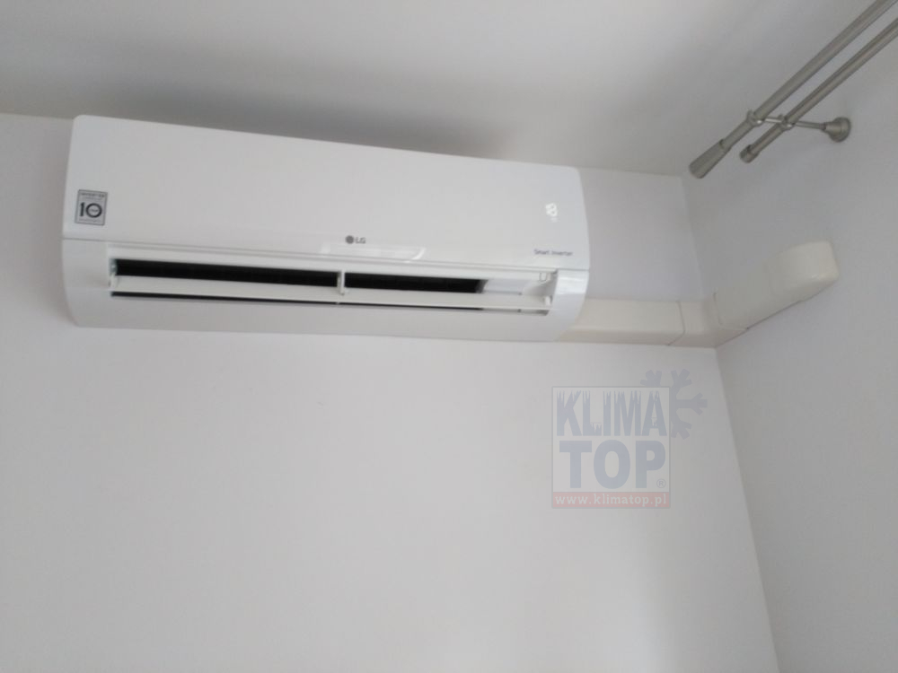 Mieszkanie prywatne - Marki. Zamontowany klimatyzator: LG serii Basic E18EM (moc chłodnicza 5 kW) obsługujący salon na poddaszu.