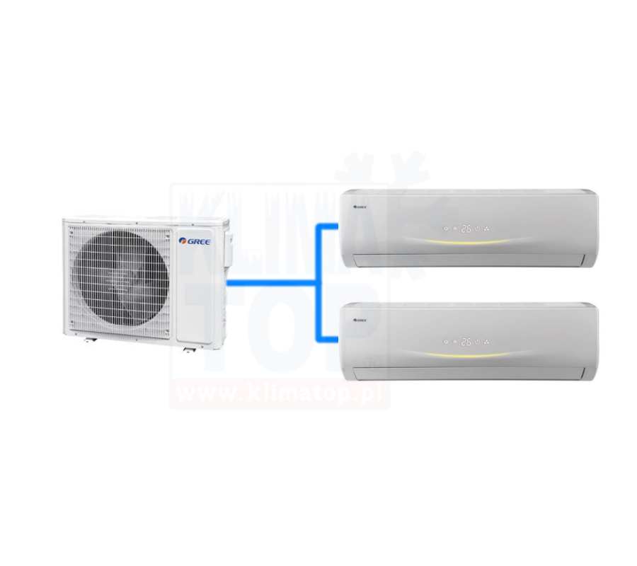 Klimatyzator ścienny multisplit Gree PULAR do pomieszczeń 2x25m2 (2x PU09I +FM18O) z montażem