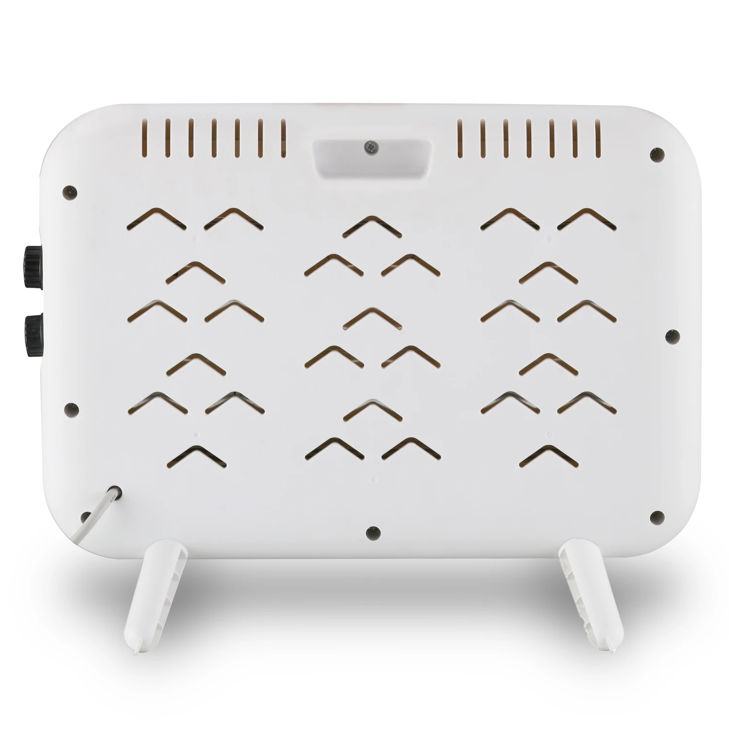 Grzejnik Argo Seventy Ice łączy nowoczesną technologię kwarcową z włóknem węglowym z najwyższymi standardami bezpieczeństwa, zapewniając komfortowe i efektywne ogrzewanie pomieszczeń. Dwie niezależnie działające świece kwarcowe umożliwiają szybkie nagrzewanie oraz równomierne rozprowadzanie ciepła, przy jednoczesnym zachowaniu wysokiej efektywności energetycznej. Użytkownik może wybrać tryb ECO lub COMFORT, dopasowując moc grzewczą do aktualnych potrzeb. Dodatkowo, metalowa siatka ochronna i ognioodporna obudowa minimalizują ryzyko poparzeń i pożaru, a mechanizmy automatycznego wyłączania w przypadku przewrócenia lub przegrzania gwarantują bezpieczne korzystanie z urządzenia w domu z dziećmi i zwierzętami. Proste pokrętła sterujące pozwalają intuicyjnie regulować temperaturę i tryb pracy, czyniąc obsługę wygodną i bezproblemową.