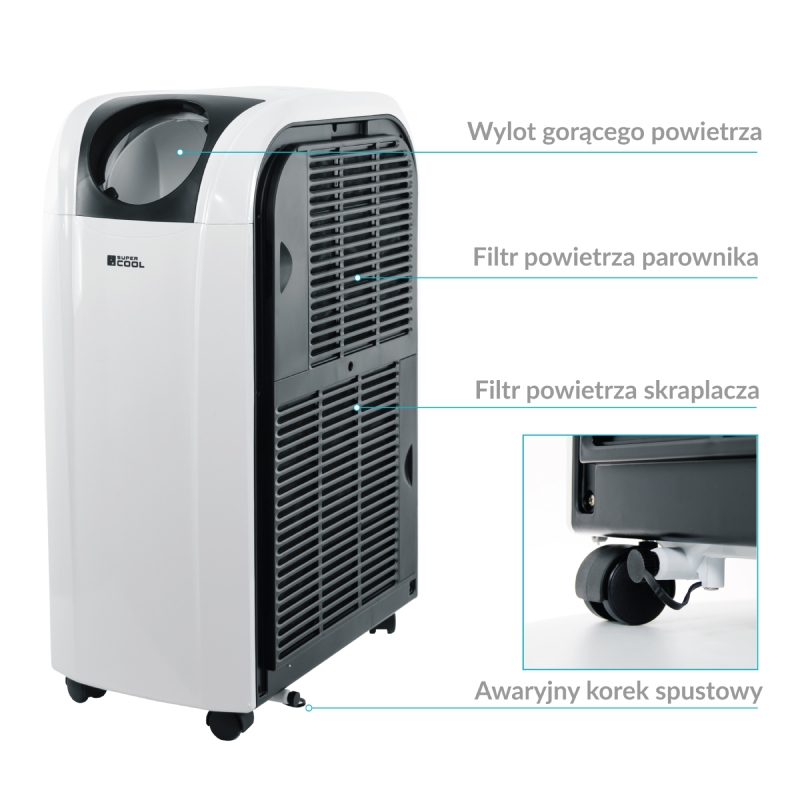 Dzięki klasie energetycznej A klimatyzator przenośny pozwala na oszczędne korzystanie z komfortu chłodnego pomieszczenia w najbardziej gorące dni. Zastosowanie nowego czynnika chłodniczego R290 – pokazuje również dbałość producenta o środowisko naturalne. Czynnik ten nie powoduje efektu cieplarnianego, nie niszczy warstwy ozonowej jednocześnie zapewniając świetne właściwości termodynamiczne.