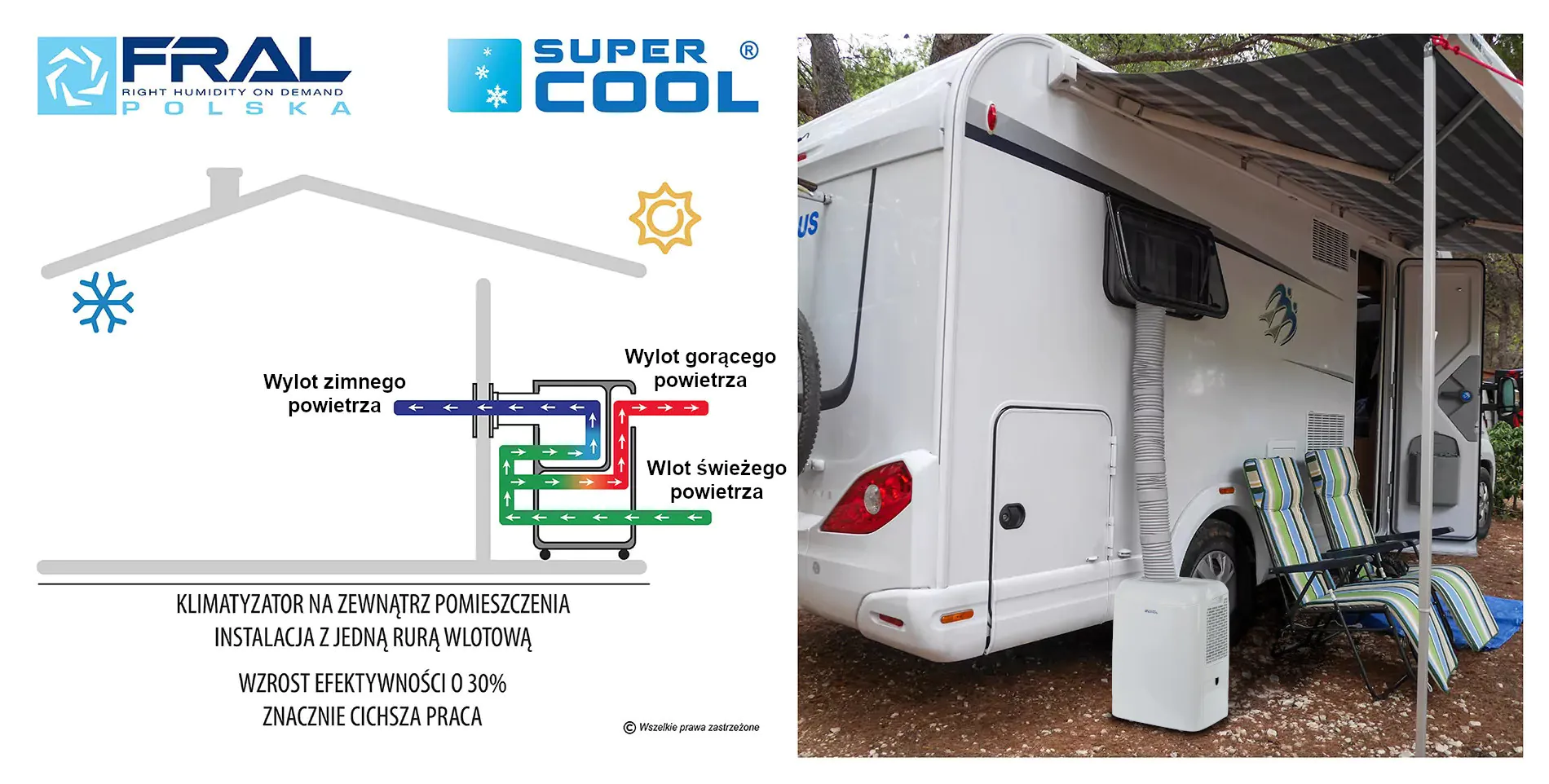 Niewielkie rozmiary nie idą jednak w parze z mniejszą wydajnością. Klimatyzator Fral FSC03.1 charakteryzuje się mocą chłodniczą na poziomie 0,9 kW, co pozwala na schłodzenie niewielkiego pokoju czy wnętrza przyczepy kempingowej. Urządzenie oferuje również funkcję ogrzewania również osiągając moc 0.9 kW.