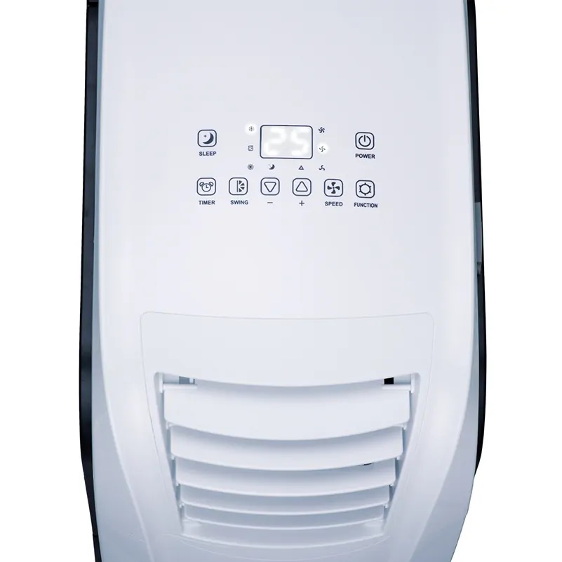 Estetyczny, kompaktowy blok mieści w sobie skraplacz i parownik. Ciepłe powietrze odprowadzane jest przez rurę wylotową lub kratkę (w zależności od tego czy urządzenie stoi wewnątrz czy na zewnątrz pomieszczenia). Skropliny powstałe podczas pracy klimatyzatora odprowadzane są na zewnątrz automatycznie z gorącym powietrzem lub w całości mogą być usunięte rurą spustową na zewnątrz (do zbiornika, kanalizacji itp.).