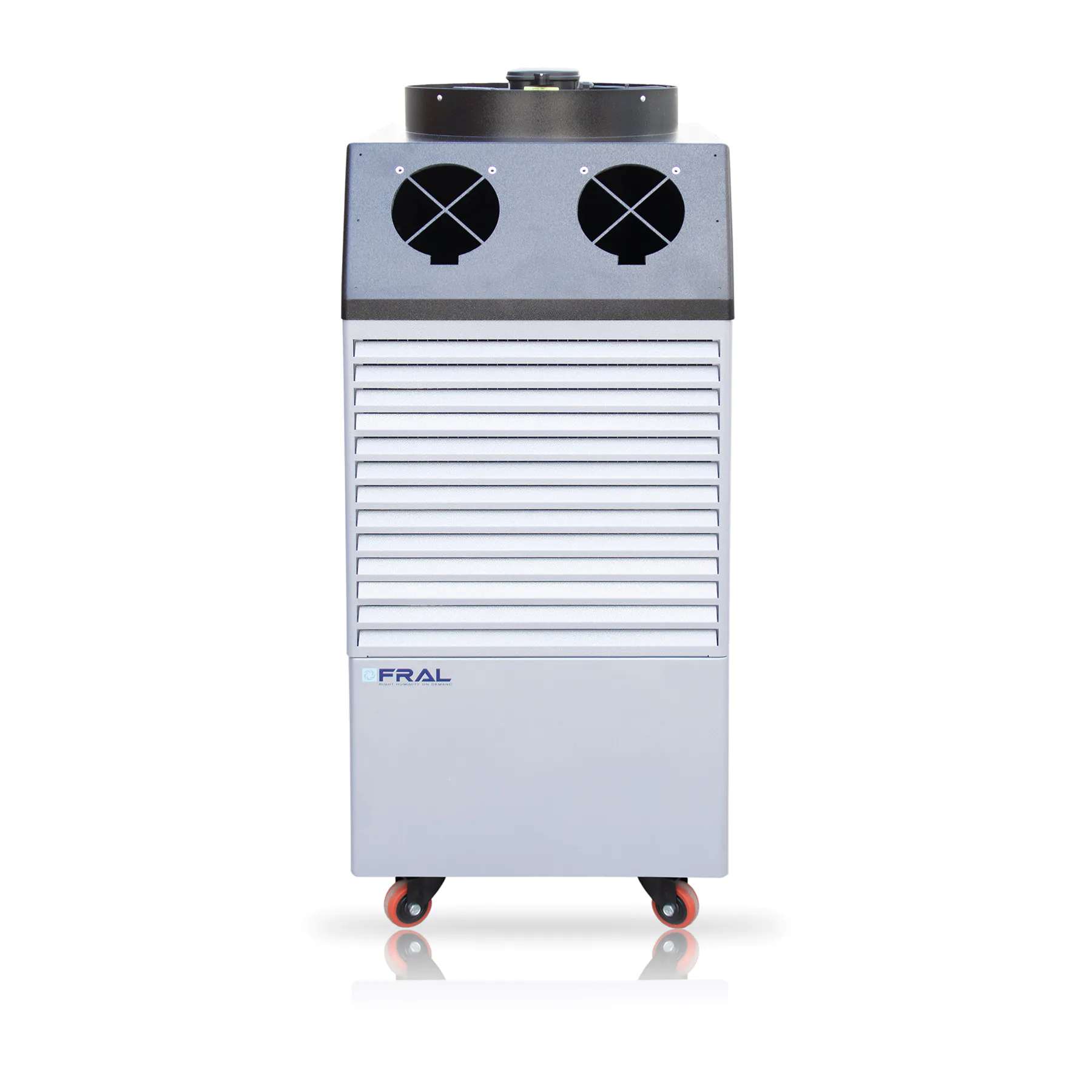 Klimatyzator Fral FSC25.4 został zaprojektowany z myślą o zastosowaniu przemysłowym, co oznacza solidną konstrukcję, odporność na intensywne użytkowanie oraz łatwość w obsłudze. Urządzenie jest wyposażone w funkcje osuszania powietrza oraz wentylacji, co pozwala utrzymać odpowiedni poziom wilgoci i zapewnić cyrkulację powietrza w pomieszczeniu.