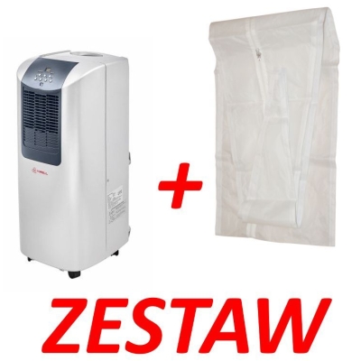 W skład zestawu wchodzą; klimatyzator przenośny i uszczelka okienna