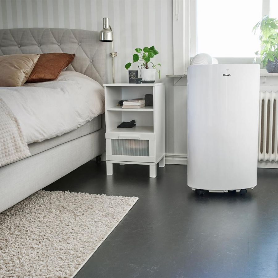 Wood’s Cortina Smart to świetny klimatyzator zapewniający komfortowe warunki nawet podczas największych upałów - działa do 45°C. Dzięki zmywalnym filtrom bardzo łatwo utrzymać go w czystości, filtr wystarczy odkurzyć, lub wypłukać i wysuszyć. Wood's Cortina Smart jest wyposażony zarówno w cyfrowy panel dotykowy jak i pilot zdalnego sterowania, a dodatkowo wyposażony został w łączność Wi-Fi oraz dedykowaną aplikację Wood's Connect. Dzięki kompaktowej obudowie osadzonej na solidnych kołach urządzenie jest bardzo łatwe w transportowaniu. Dzięki zawartym w komplecie akcesoriom gorące powietrze jest łatwo wyprowadzane przez okno.