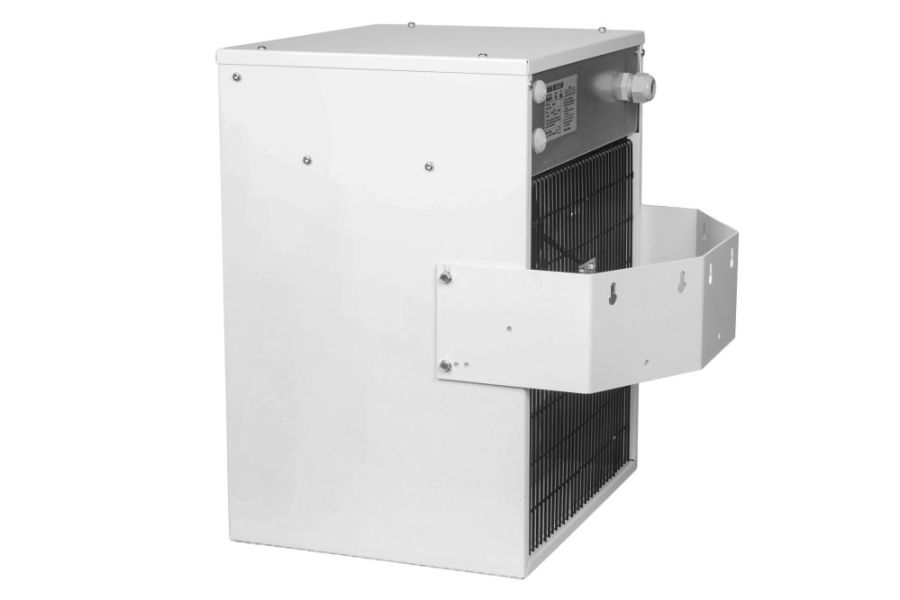 Nagrzewnica do montażu naściennego Inelco Dania SSH 22 kW przystosowana jest do pracy stacjonarnej. Dzięki znajdującemu się w zestawie z nagrzewnicą zewnętrznemu sterownikowi, możliwa jest wygodna kontrola nawet wysoko zawieszonych urządzeń.