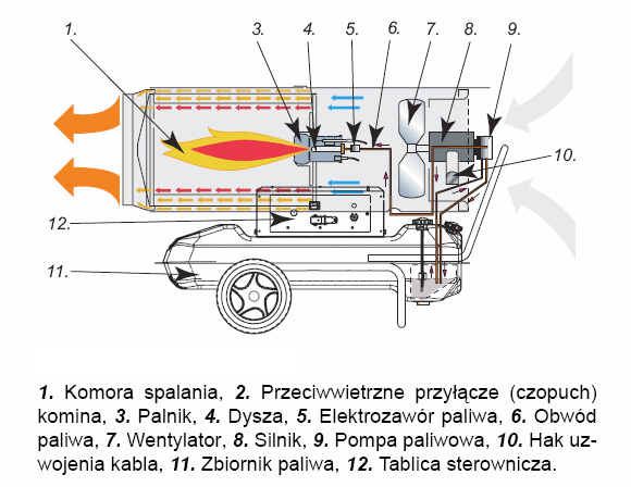 Dla zapewnienia odpowiedniej ilości tlenu do spalania niezbędna jest wentylacja pomieszczenia. Ponieważ urządzenie w trakcie pracy wydziela spaliny, w pomieszczeniu nie mogą znajdować się ludzie. Wyjątkiem są DUŻE przestrzenie i hale BARDZO DOBRZE WENTYLOWANE.