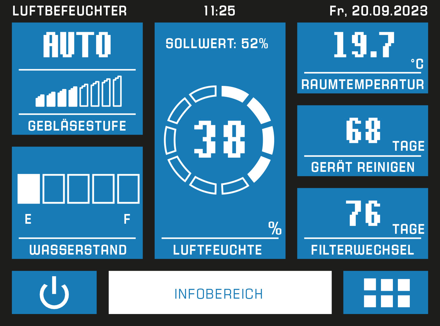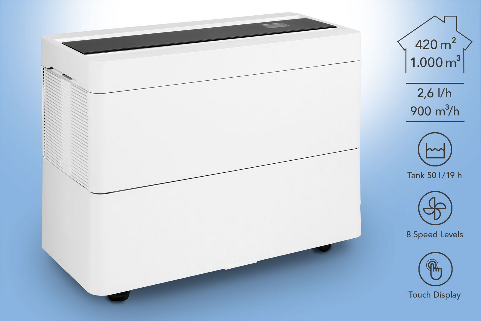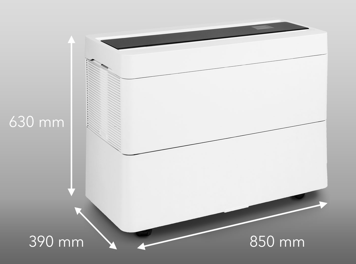 Dzięki zaawansowanym technologiom model B600 zapewnia wyjątkowo cichą pracę – osiem automatycznych poziomów dmuchawy minimalizuje hałas, co czyni urządzenie idealnym nawet do sypialni czy biur. Modułowa budowa pozwala na łatwą konserwację i czyszczenie, a system samodiagnozy z praktycznymi wskaźnikami ułatwia zarządzanie urządzeniem. Panel dotykowy z czytelnym wyświetlaczem pokazuje kluczowe informacje, takie jak wilgotność, temperatura i status urządzenia.