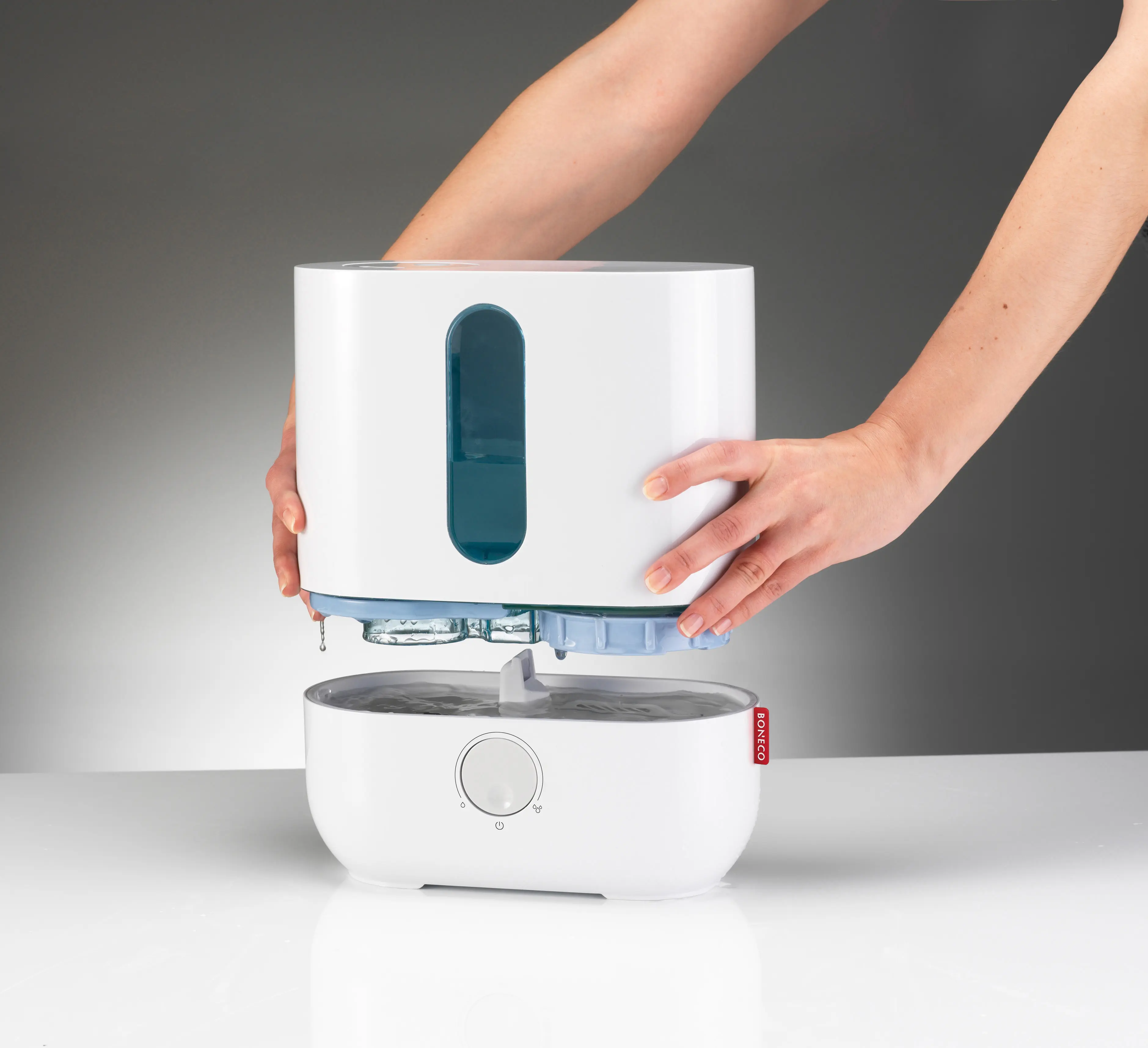 Nawilżacz Boneco U200 to urządzenie idealne dla osób, które cenią sobie zdrowe powietrze - rodziny z dziećmi, alergicy, osoby mieszkające w suchym klimacie lub w pomieszczeniach z klimatyzacją. Sprawdzi się również w biurach, gabinetach, sypialniach i pokojach dziecięcych - wszędzie tam, gdzie potrzebne jest stałe, ciche nawilżanie powietrza bez problemu z kamieniem czy drobnoustrojami. Boneco U200 może być używany zarówno w domach mieszkalnych, jak i mniejszych biurach, lub pokojach hotelowych - wszędzie tam, gdzie liczy się komfort powietrza i wysoka jakość wykonania urządzenia.