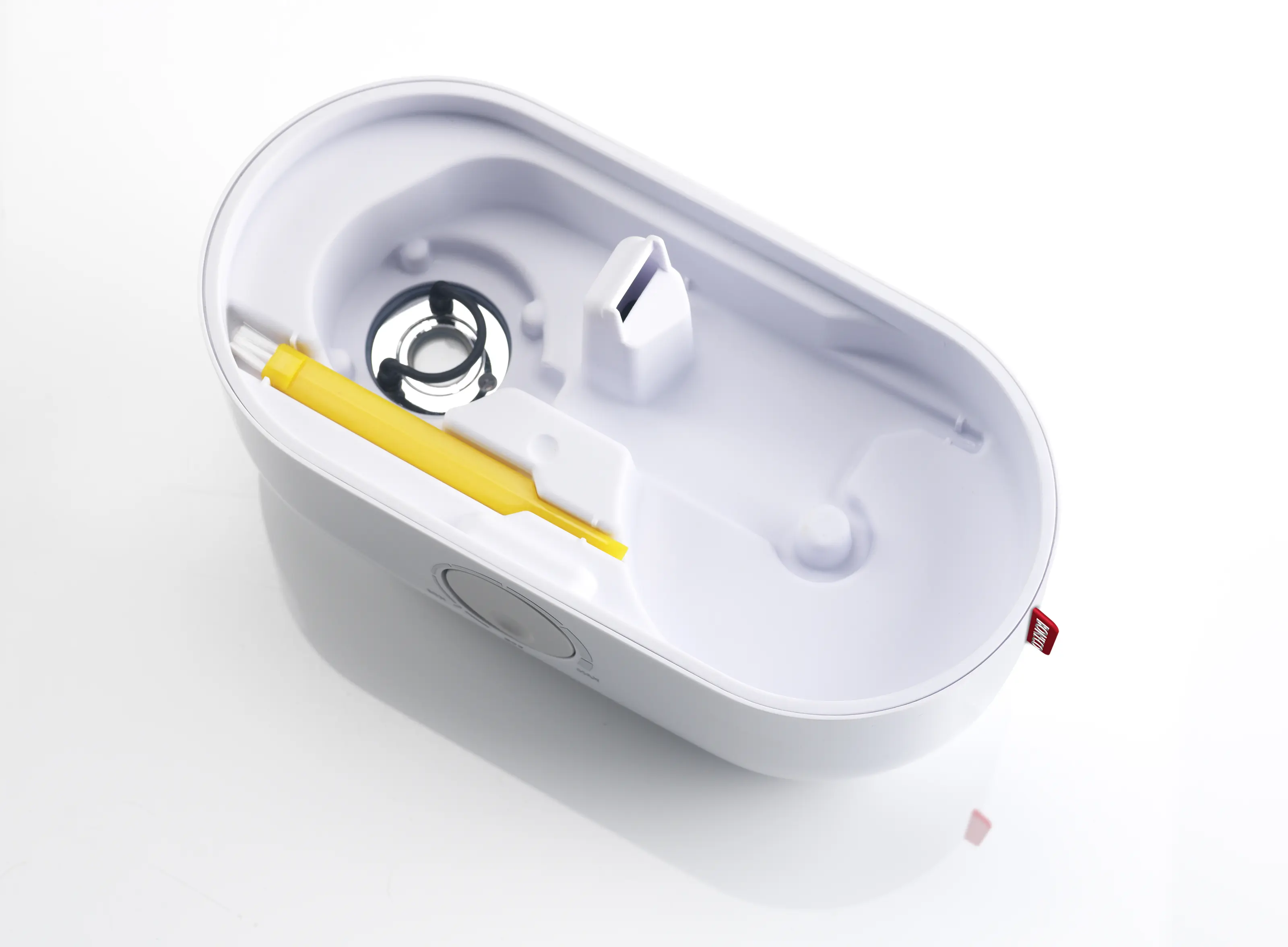 Boneco Ultrasonic U200 wygląda dobrze - jego obły, kompaktowy kształt pasuje do różnych wnętrz. Obudowa zawiera pojemnik na wodę o pojemności 3,5 litra, z uchwytem ułatwiającym napełnianie, a także pokrętło do sterowania. Obsługa jest prosta, a czyszczenie łatwe, dzięki dołączonej szczoteczce i konstrukcji umożliwiającej szybki demontaż zbiornika. Poziom hałasu jest bardzo niski - poniżej 30 dB(A) - co oznacza, że nawilżacz Boneco U200 może działać także w nocy, bez zakłócania snu lub pracy w biurze.
