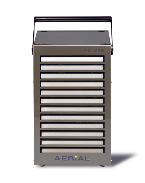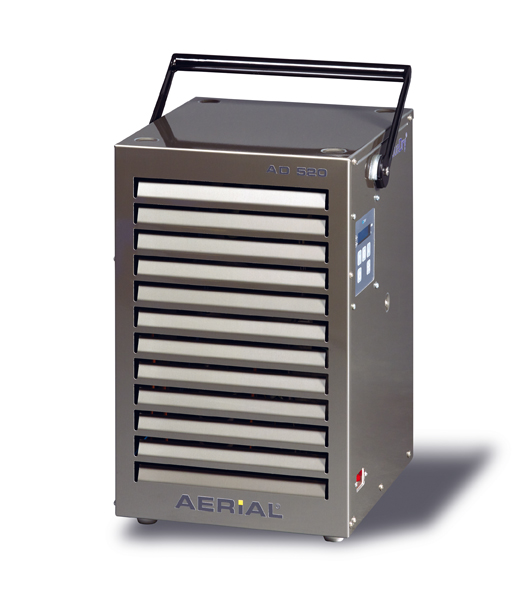 Aerial AD 520 to urządzenie wolnostojące, które można piętrować, a gumowe stopki zapewniają stabilność na podłodze. Składany uchwyt ułatwia przenoszenie. Te cechy, oraz możliwość zastosowania akcesoryjnego uchwytu ściennego sprawia, że osuszacz stanowi praktyczne i kompaktowe rozwiązanie dla każdego, kto potrzebuje osuszyć pomieszczenia zarówno w przemyśle jak i w gospodarstwie domowym.