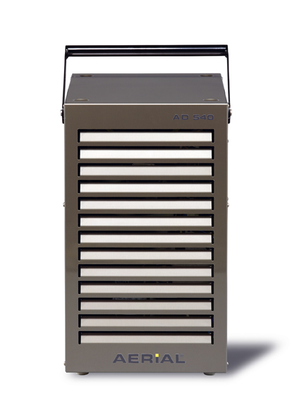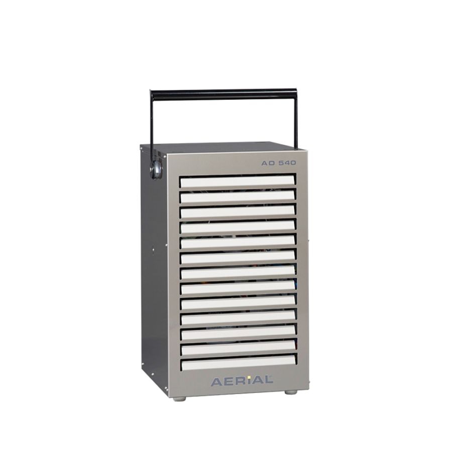 Aerial AD 540 to urządzenie wolnostojące, które można piętrować, a gumowe stopki zapewniają stabilność na podłodze. Składany uchwyt ułatwia przenoszenie. Te cechy, oraz możliwość zastosowania akcesoryjnego uchwytu ściennego sprawia, że osuszacz stanowi praktyczne i kompaktowe rozwiązanie dla każdego, kto potrzebuje osuszyć pomieszczenia zarówno w przemyśle jak i w gospodarstwie domowym.