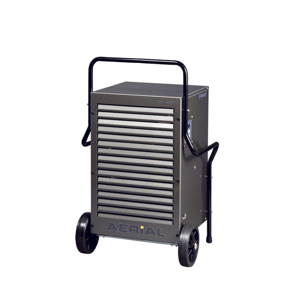 Aerial AD 680 to urządzenie wolnostojące, które można transportować na fabrycznie montowanych kołach, a gumowe podkładki na stopkach zapewniają stabilność na podłodze. Stały uchwyt ułatwia przewożenie. Te cechy sprawiają, że osuszacz stanowi praktyczne i kompaktowe rozwiązanie dla każdego, kto potrzebuje osuszyć pomieszczenia zarówno w przemyśle jak i w gospodarstwie domowym.