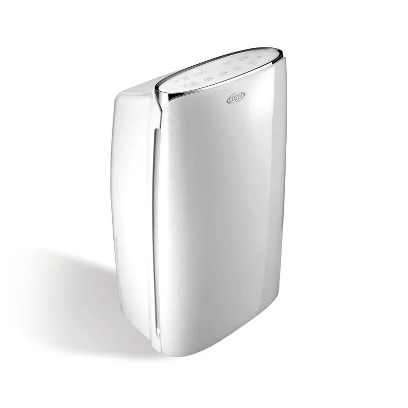 Elektryczny osuszacz powietrza Argo Platinum Evo 41 ma kompaktowy i elegancki design. Obudowa jest wykonana z wysokiej jakości materiałów i wykończona na wysoki połysk. Ten osuszacz kondensacyjny wyposażony jest w cyfrowe sterowanie, wyświetlacz LED na eleganckim chromowanym panelu sterowania oraz precyzyjny higrostat. Argo Platinum Evo 41 pochłania do 41 litrów wilgoci na dobę i jest idealny do pomieszczeń o powierzchni do 50m2. 7 litrów pojemności zbiornika na wodę sprawia, że nie trzeba go zbyt często opróżniać Kompresorowy osuszacz powietrza Evo 41 posiada również 24-godzinny timer, 3 prędkości wentylacji do wyboru oraz specjalną funkcję suszenia prania. Osuszacz powietrza – pochłaniacz wilgoci Platinum Evo 41 jest bardzo łatwy w transporcie dzięki praktycznym wielokierunkowym kółkom i wygodnemu uchwytowi.