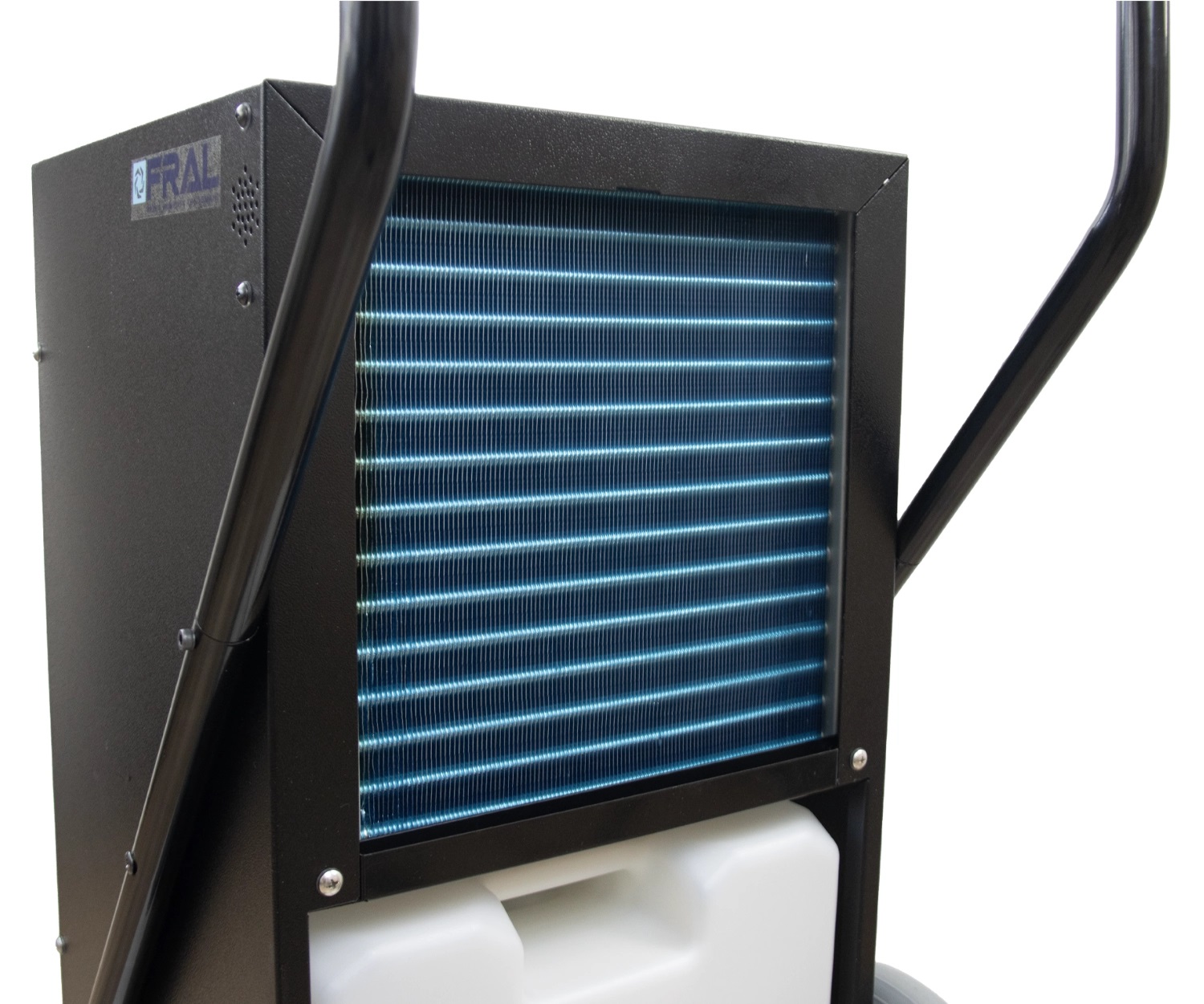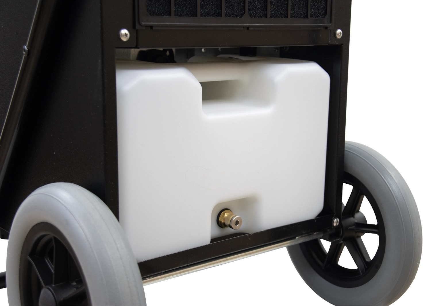 Osuszacz powietrza FRAL FAEP50 charakteryzuje się solidną konstrukcją wykonaną z najwyższej jakości materiałów. Przeznaczony do intensywnego użytkowania w wymagających środowiskach przemysłowych, urządzenie jest niezawodne i wydajne. FAEP50 posiada ergonomiczną rączkę z metalu oraz duże, trwałe koła tylne, które zapewniają łatwość manewrowania i wygodny transport. Zbiornik na wodę o pojemności 11 litrów jest łatwy do wyjęcia i opróżnienia.