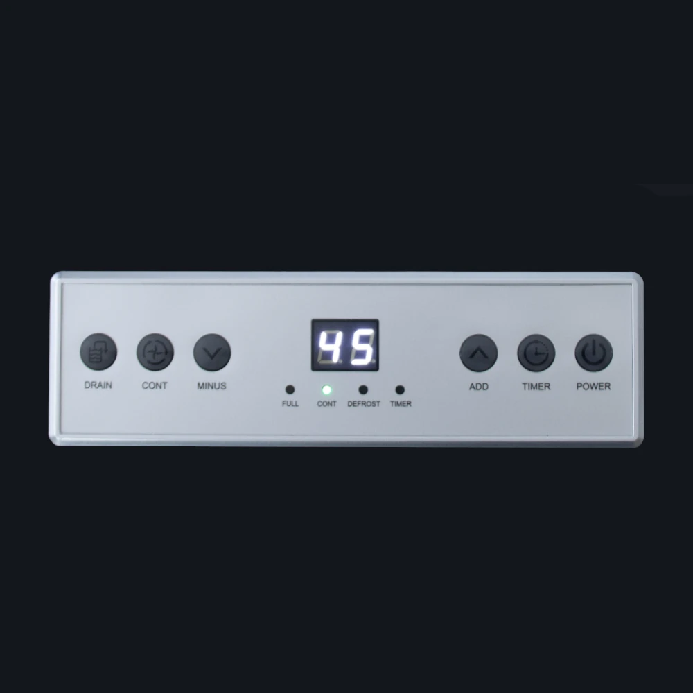 Model FDSD70 oferuje wydajność sięgającą 70l/24h oraz przepływ powietrza na poziomie 470 m³/h, co pozwala skutecznie osuszać pomieszczenia o kubaturze sięgającej nawet 470 m³, w zależności od warunków i stopnia zawilgocenia. Dzięki funkcji Hot Gas Defrost, urządzenie może pracować efektywnie już od 4°C, co czyni je niezawodnym rozwiązaniem także w chłodniejszych, nieogrzewanych przestrzeniach.