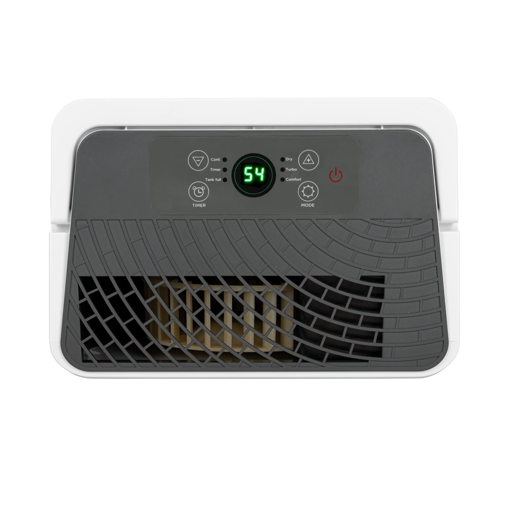 Domowy osuszacz powietrza Warmtec ODT-12N jest idealny do niewielkich, lecz zawilgoconych pomieszczeń. Sprawdzi się w pomieszczeniach o powierzchni do 20 m2, o ile wysokość pomieszczenia nie przekracza 2,7 m. Ma cyfrowy, ale czytelny i prosty panel sterowania zlokalizowany na górze obudowy oraz wbudowany higrostatem elektroniczny. Ma 4 przyciski i kilka ikonek.