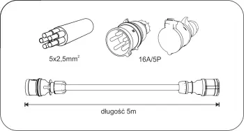 Przedłużacz 3-fazowy siłowy 5 m 5 × 2,5 mm² ze złączami 16 A/5P to niezawodne i bezpieczne rozwiązanie do zasilania urządzeń przemysłowych, nagrzewnic, maszyn i innych odbiorników wymagających trójfazowego zasilania. Przewód o przekroju 5 × 2,5 mm² gwarantuje stabilny przepływ prądu przy obciążeniach do 16 A, a solidne złącza 5‑biegunowe (3 fazy + neutralny + PE) zapewniają pewne połączenie elektryczne, odporne na przypadkowe rozłączenie i warunki pracy w halach produkcyjnych lub na placach budowy. Konstrukcja przedłużacza uwzględnia trwałość i bezpieczeństwo użytkowania – izolacja przewodu jest odporna na uszkodzenia mechaniczne, a materiały użyte do produkcji spełniają obowiązujące normy. Dzięki długości 5 m urządzenie oferuje wygodę i elastyczność w rozmieszczaniu sprzętu elektrycznego, pozwalając na szybkie i komfortowe podłączenie w wielu miejscach.