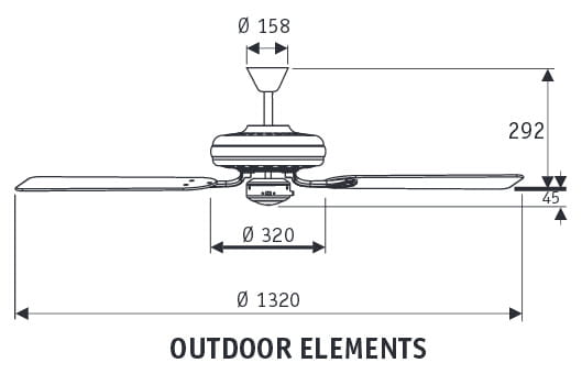 Wentylator sufitowy Hunter OUTDOOR ELEMENTS II posiada możliwość zamontowania na zewnątrz, pod zadaszeniem (IP 44).
