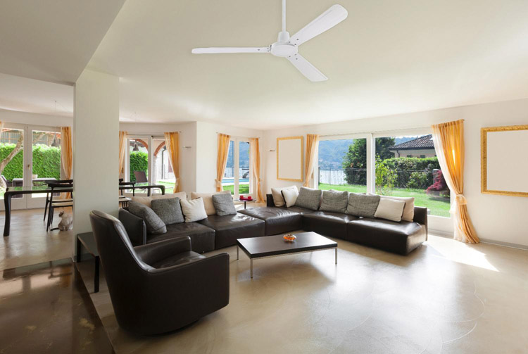 Wentylator sufitowy doskonale miesza powietrze w pomieszczeniu, a obracające się śmigło nie powoduje podrywania z podłogi zanieczyszczeń.