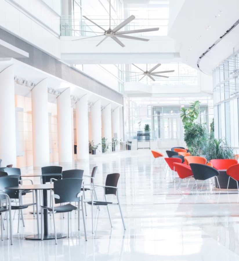 Wentylator sufitowy doskonale miesza powietrze w pomieszczeniu, a obracające się śmigło nie powoduje podrywania z podłogi zanieczyszczeń.