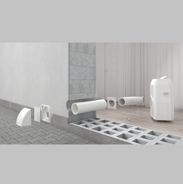 Zestaw instalacyjny rury wyrzutowej pozwala na wyprowadzenie ciepłego powietrza poza schładzane pomieszczenie. Takie rozwiązanie zwiększa wydajność klimatyzatora przenośnego zwiększając komfort użytkowania. Dzięki odprowadzeniu ciepłego powietrza na zewnątrz nie jest ono ponownie schładzane.